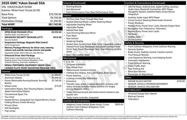 - Denali Preferred Equipment Group Includes Standard Equipment
