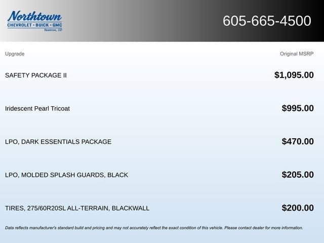 - Safety Package includes (UD5) Front and Rear Park Assist, (UKC) Lane Change Alert with Side Blind Zone Alert and (UFG) Rear Cross Traffic Alert (Vehicles built prior to 12-20-2021 include Front and Rear Park Assist. Certain vehicles built on or after 12-20-2021, will be forced to include (00Z) Not Equipped with Front and Rear Park Assist, which removes Front and Rear Park Assist. See dealer for details or the window label for the features on a specific vehicle. Includes Perimeter Lighting.)